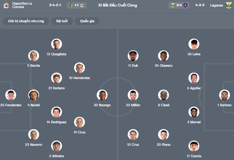 Đội hình dự kiến Deportivo vs Leganes: