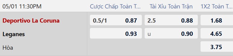 Thông tin tỷ lệ kèo Deportivo vs Leganes: