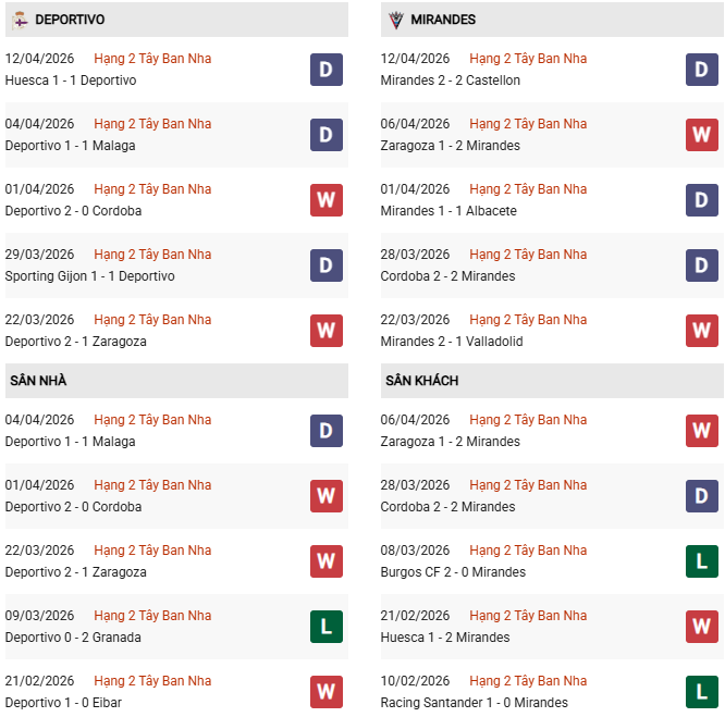 NHẬN ĐỊNH DEPORTIVO VS MIRANDES, 01H30 NGÀY 21/4: HẠNG 2 TÂY BAN NHA