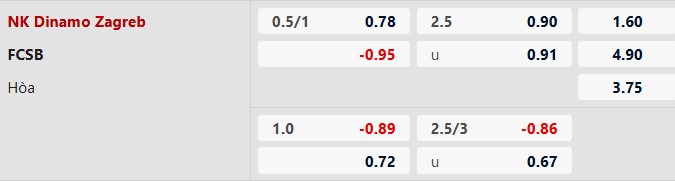 Thông tin tỷ lệ cược Dinamo Zagreb vs FCSB: