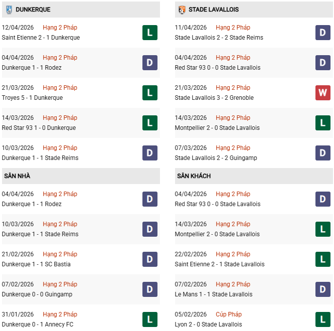 - Trên sân nhà, Dunkerque thắng 1, thua 2 trước Laval.