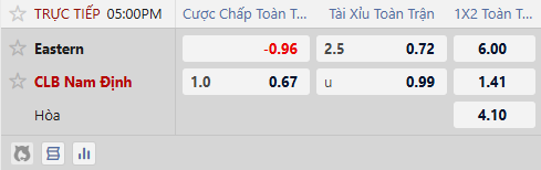 Thông tin tỷ lệ kèo Eastern vs Nam Định: