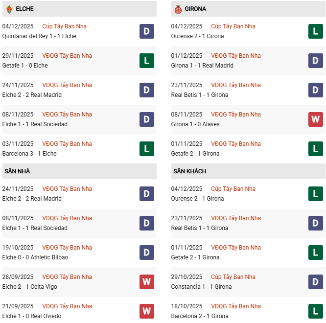 - Trên sân nhà, Elche thắng 4, thua 2 trước Girona.