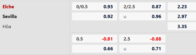 Thông tin tỷ lệ kèo Elche vs Sevilla: