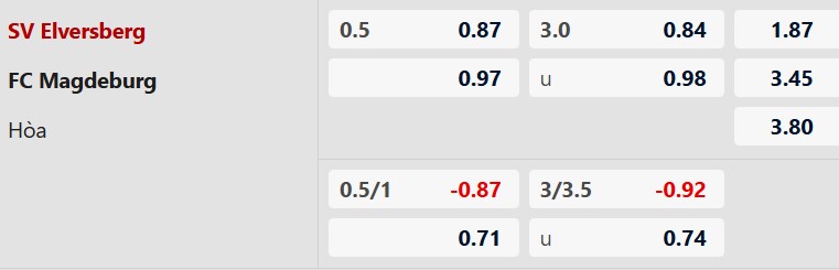 Thông tin tỷ lệ kèo Elversberg vs Magdeburg: