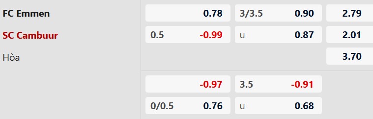 Nhận định kèo châu Á Emmen vs Cambuur: