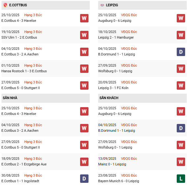 Tính riêng trên sân nhà, Energie Cottbus đang bất bại 7 trận gần đây, với 5 chiến thắng và 2 trận hòa. Phong độ này giúp họ hoàn toàn tự tin khi đón tiếp Leipzig và hy vọng lại một lần nữa gây bất ngờ trước đội bóng được đánh giá cao hơn.