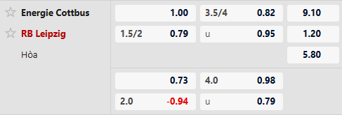 Thông tin tỷ lệ kèo Energie Cottbus vs Leipzig: