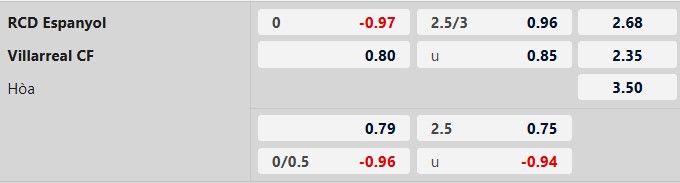 Thông tin tỷ lệ kèo Espanyol đấu với Villarreal: