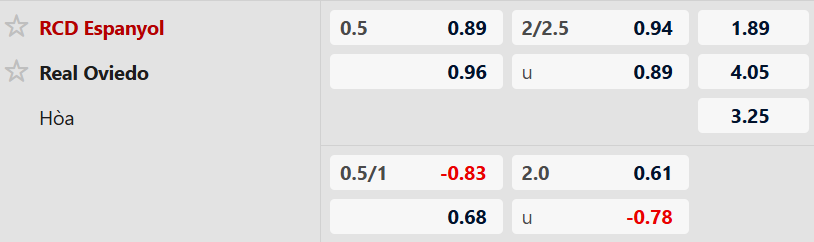 Thông tin tỷ lệ kèo Espanyol vs Oviedo:
