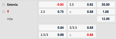 Đương nhiên Italia phải là đội được đánh giá cao hơn rất nhiều với mức chấp lên đến 2 1/2 bàn. 4 lần chạm mặt liên tiếp, Italia toàn thắng trước Estonia và sẽ chẳng ngạc nhiên nếu họ có thể tiếp tục làm được điều tương tự thêm lần nữa ở màn đụng độ sắp tới.