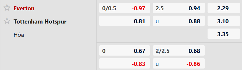 Thông tin kèo bóng đá Everton vs Tottenham: