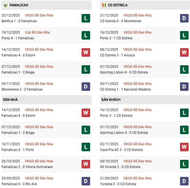 Thống kê phong độ Famalicao vs Estrela Amadora: