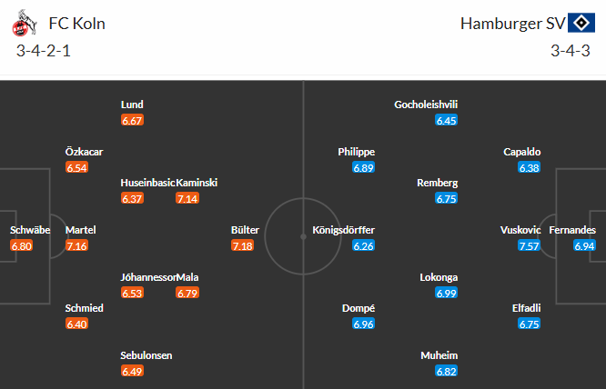 Đội hình dự kiến FC Koln đấu với Hamburger: