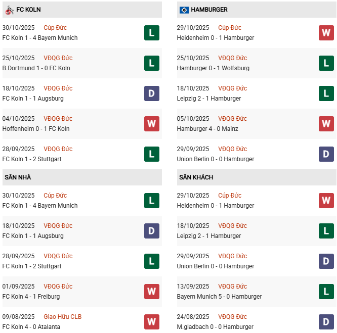 Thành tích đối đầu FC Koln đấu với Hamburger: