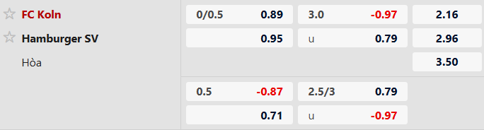 Thông tin tỷ lệ kèo FC Koln đấu với Hamburger: