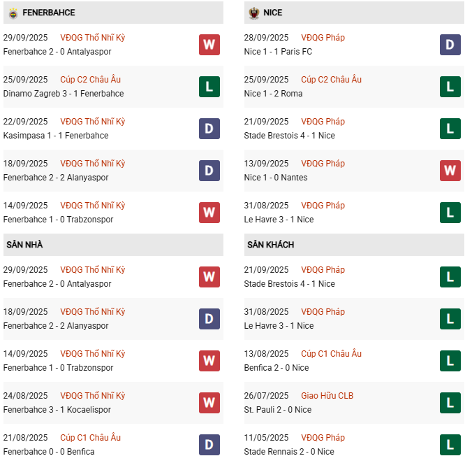 Fenerbahce được đánh giá cao hơn khi bước vào trận đấu này, với kèo chấp 3/4 bàn cả trận. Nice lại thể hiện phong độ khá thất thường, khi chỉ thắng 1, hòa 1 và thua 3 trong 5 lần ra sân gần nhất. Đáng lo hơn, thành tích sân khách của họ cực kỳ yếu kém với chuỗi 4 thất bại liên tiếp. Trái lại, Fenerbahce có lợi thế lớn từ sân nhà và được kỳ vọng sẽ tận dụng tốt điều này để giành trọn 3 điểm.
