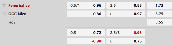 Thông tin tỷ lệ kèo bóng đá Fenerbahce vs Nice: