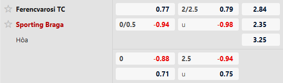 Thông tin tỷ lệ kèo Ferencvaros vs Braga: