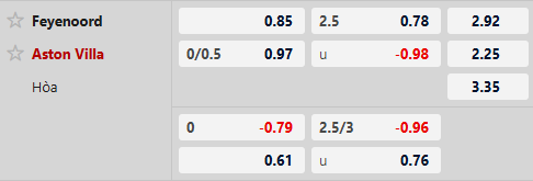 Thông tin tỷ lệ kèo bóng đá Feyenoord vs Aston Villa: