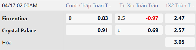 Thông tin tỷ lệ kèo bóng đá Fiorentina vs Crystal Palace: