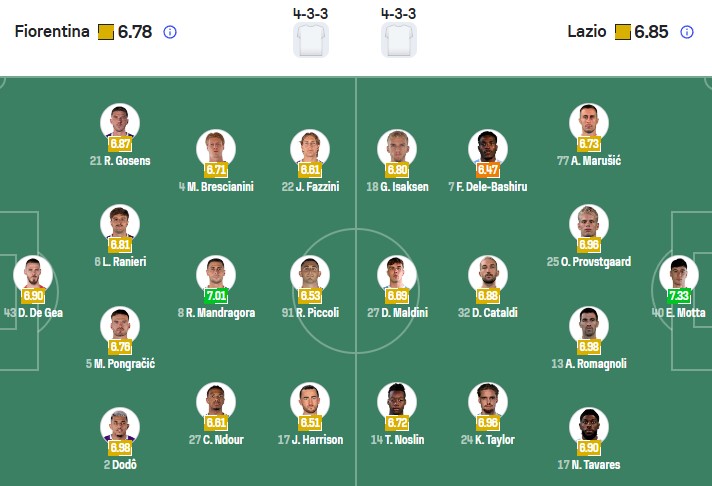 Số liệu thống kê về Fiorentina gặp Lazio: