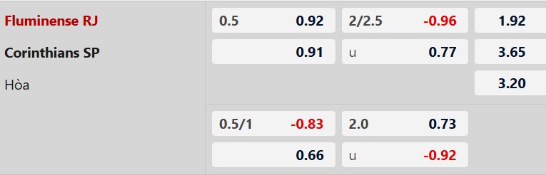 Thông tin tỷ lệ kèo Fluminense vs Corinthians: