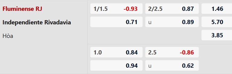 Soi kèo châu Á Fluminense vs Ind. Rivadavia: