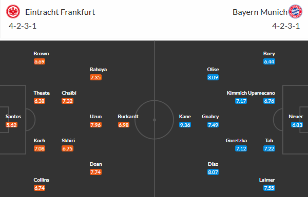 Đội hình dự kiến Frankfurt vs Bayern Munich: