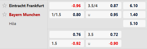Thông tin tỷ lệ kèo bóng đá Frankfurt vs Bayern Munich: