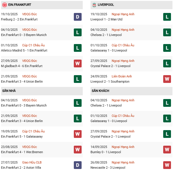 Thống kê phong độ Frankfurt vs Liverpool: