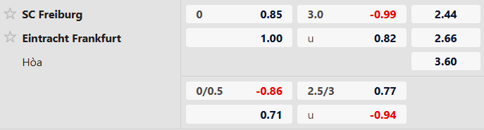 Freiburg vs Frankfurt:Freiburg -0 cả trận