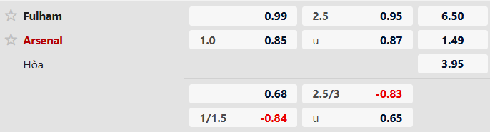 Thông tin tỷ lệ kèo bóng đá Fulham vs Arsenal: