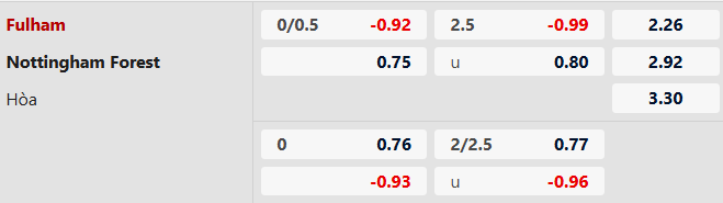 Thông tin tỷ lệ kèo bóng đá Fulham vs Nottingham: