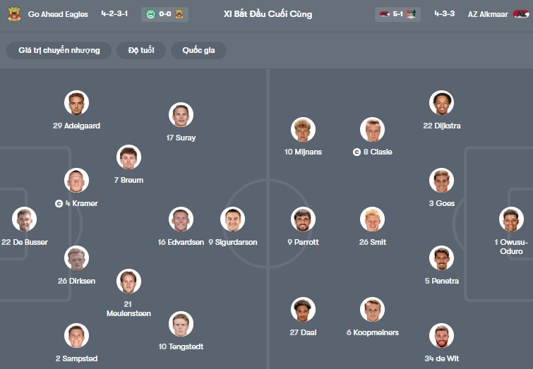 Đội hình dự kiến GA Eagles vs AZ Alkmaar: