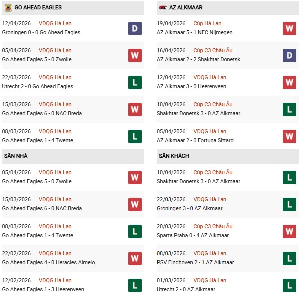 Cả hai đội đều đang sở hữu những hàng công cực kỳ bùng nổ. GA Eagles đã ghi tới 11 bàn chỉ trong 2 trận sân nhà gần nhất. Trong khi đó, 4/5 trận gần đây của AZ Alkmaar trên mọi đấu trường đều xuất hiện từ 3 bàn thắng trở lên, nổi bật là trận thắng 5-1 trước NEC hay 3-0 trước Heerenveen. Với việc cả hai đều cần điểm để thực hiện mục tiêu riêng, một thế trận đôi công rực lửa là kịch bản rất dễ xảy ra.