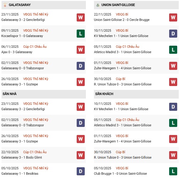 Thống kê phong độ Galatasaray vs Saint-Gilloise: