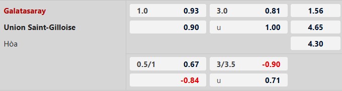 Thông tin tỷ lệ bóng đá Galatasaray vs Saint-Gilloise: