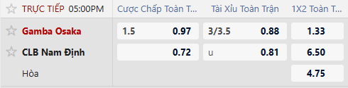 Thông tin tỷ lệ Gamba Osaka vs Nam Định: