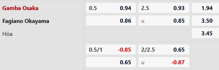 Thông tin tỷ lệ cược Gamba Osaka vs Okayama: