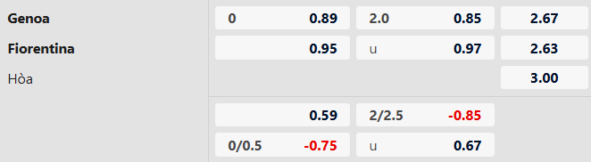 Thông tin tỷ lệ bóng đá Genoa gặp Fiorentina: