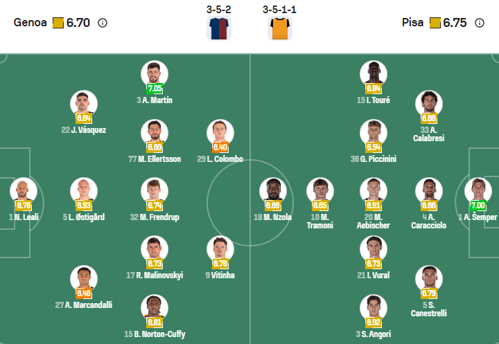 Pisa dù có hàng thủ không quá tệ nhưng bản lĩnh sân khách kém cỏi khiến họ khó có thể đứng vững trước chủ nhà Genoa.