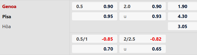 Thông tin tỷ lệ kèo Genoa vs Pisa: