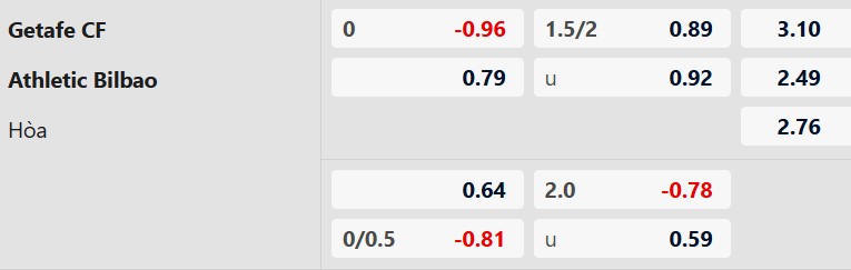 Soi kèo Getafe vs Athletic Bilbao: