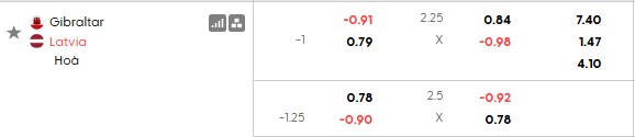 Thông tin tỷ lệ bóng đá Gibraltar vs Latvia: