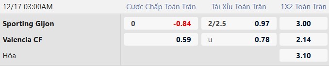 Thông tin tỷ lệ bóng đá Gijon vs Valencia: