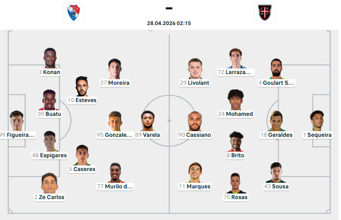 Đội hình dự kiến Gil Vicente vs Casa Pia AC:
