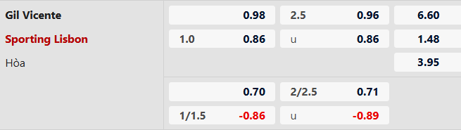 Soi kèo châu Á Gil Vicente vs Sporting Lisbon: