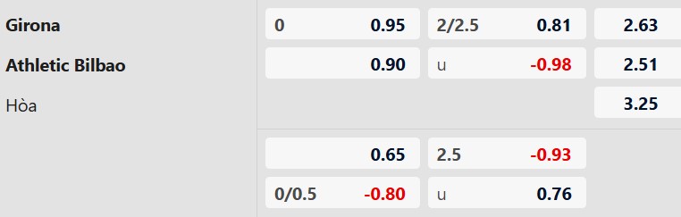 Thông tin tỷ lệ cược Girona vs Athletic Bilbao: