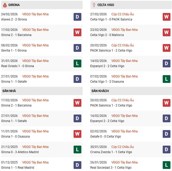 - Girona thắng 4, hòa 4, thua 2 trong 10 trận gặp Celta Vigo gần đây.